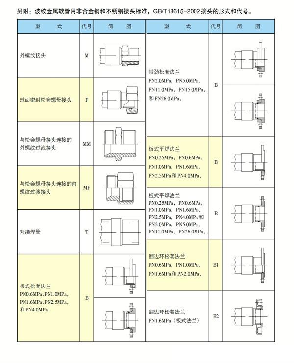 波紋金屬軟管標(biāo)準(zhǔn)接頭型式和代號(hào)